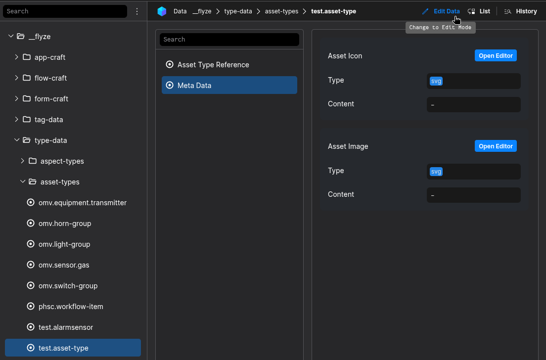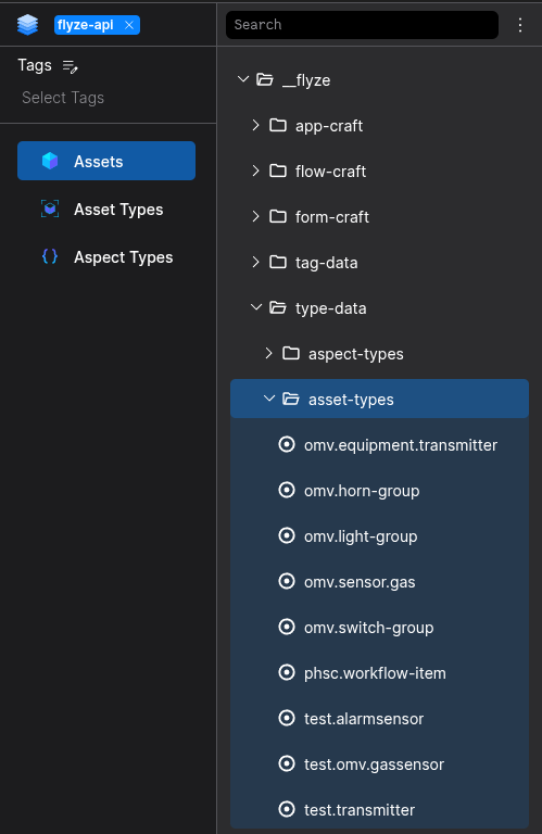 You have to setup the Master-Data in the Asset-Manager-App, either by clicking the "Create Master-Data"-Button or by manually navigating to the Asset-Manager-App in your flyze.ecosystem. Here you need to locate the asset-types-Folder.