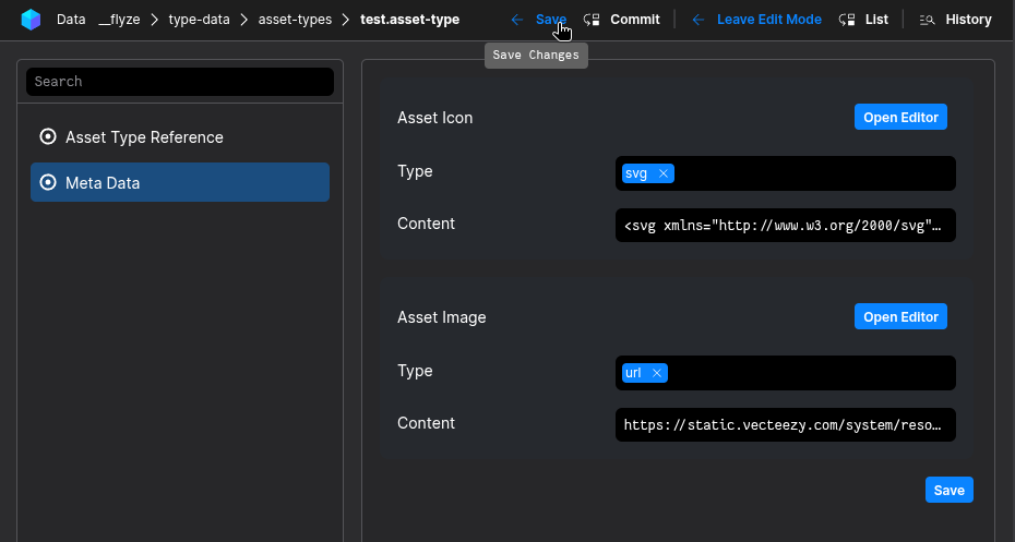 You are now able to add/edit Meta-Data of your asset-type