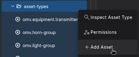 Click the Node-Actions Button to create a new Asset under the asset-types-Folder