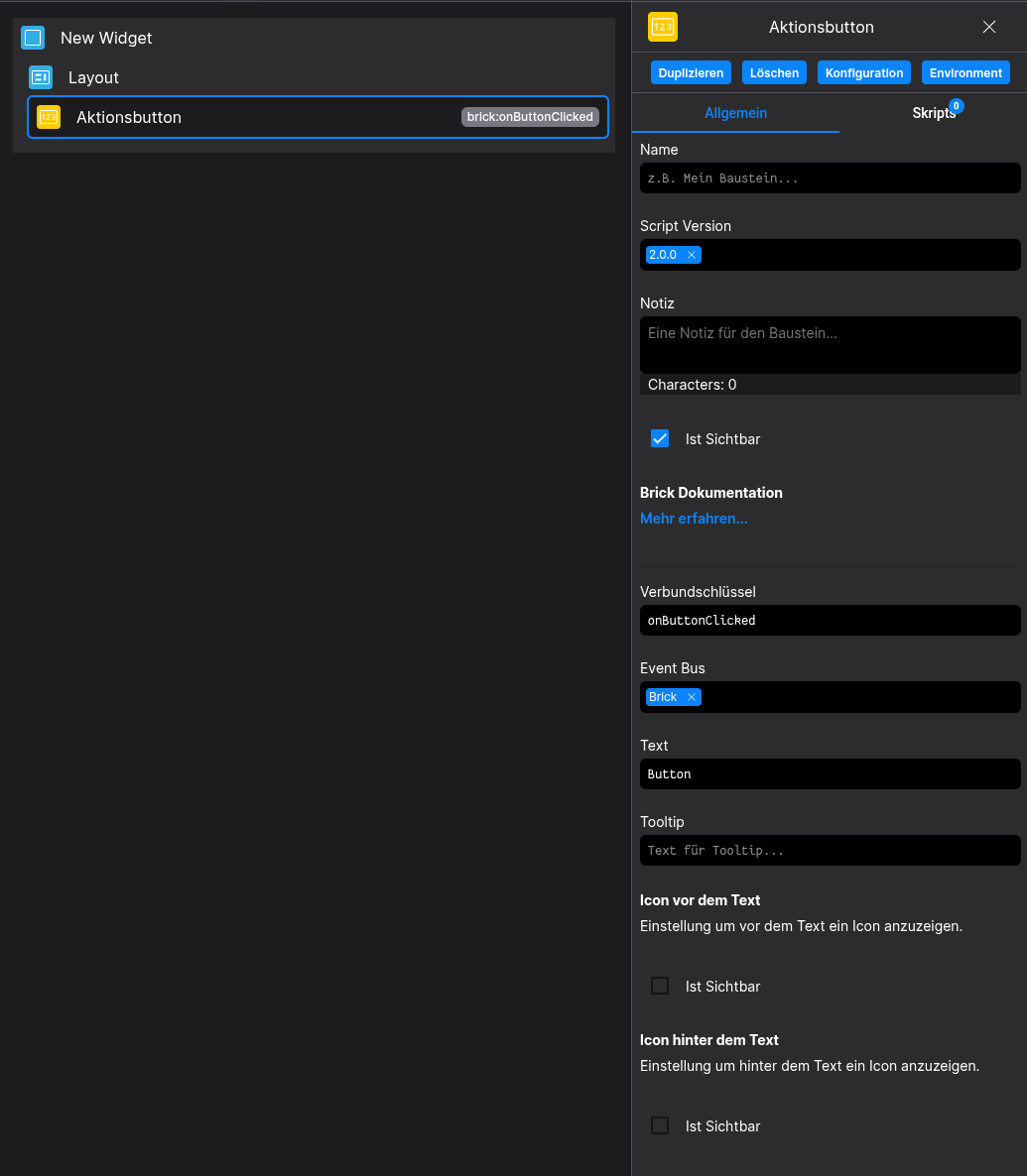 With the Action-Button Brick, you can easily add Buttons to your dashboards.