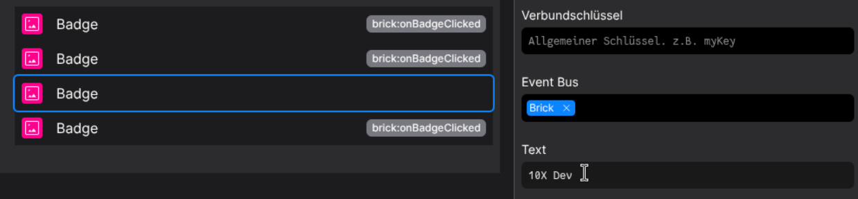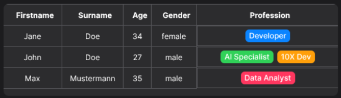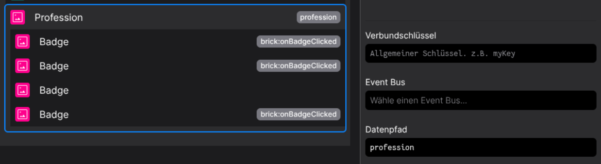 With the Badge-Array-Column Brick, you are able to define a collection of badges. It will display the corresponding badges depending on the defined props data set. Check out the example