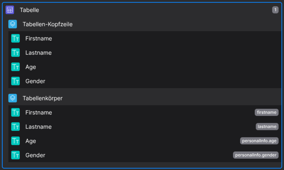 With the Default-Column Brick, you are able to display simple columns based on table data.