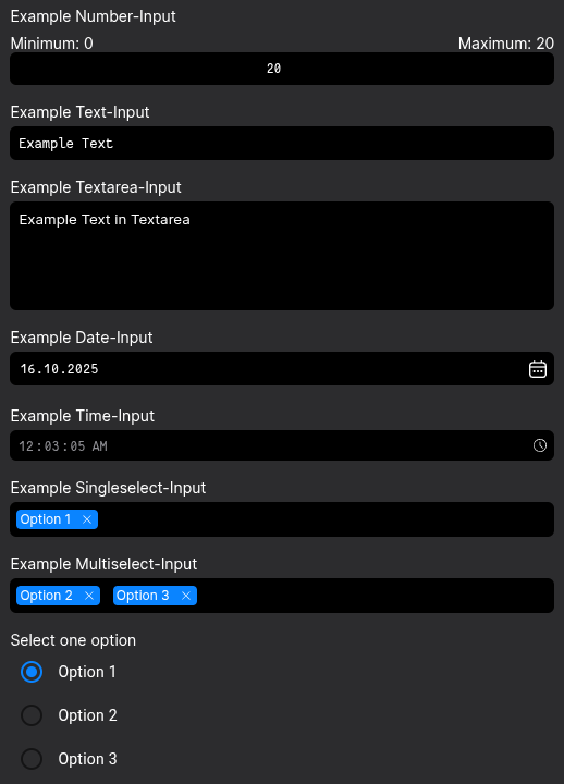 Sets the requirement of the input | Defines if a input is required or not. It will be marked and validation will be executed.boolean |