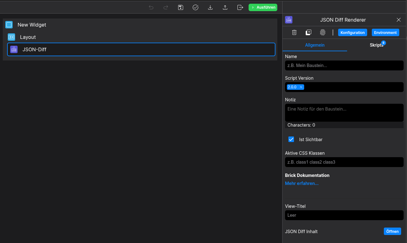 With the JSON-Diff Brick, you are able to render a JSON-Diff based on JSON Diff Patch.